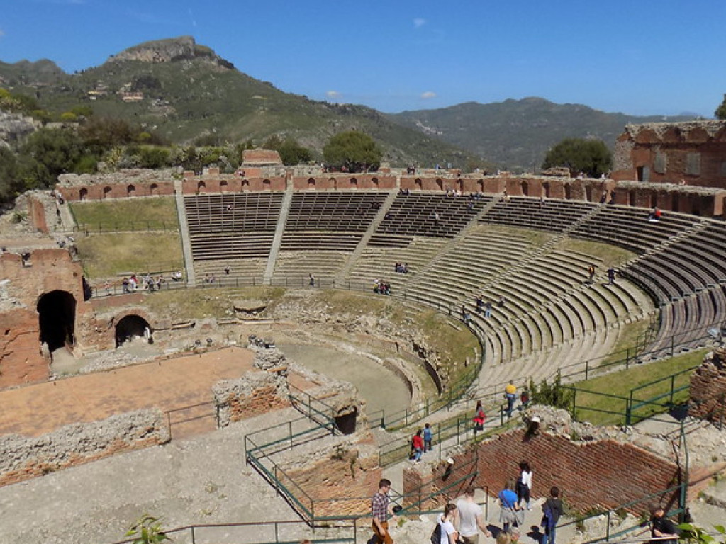 After being suitably refreshed, walk through the remaining part of Corso Umberto I as far as Piazza Vittorio Emanuele. Next to the square is the Odeon, a small theater built for the Emperor Octavian. Via Teatro Greco starts off in Piazza Vittorio Emanuele: walk along it and after 500 meters, you will come upon the Greek Theater, the main landmark of Taormina. This amazing view will stay with you forever. This ancient theater, surrounded by such wonderful scenery, nestling in the mountains, will enchant you into standing and contemplating the incredible view: the sapphire-colored sea, Etna, and the city.
